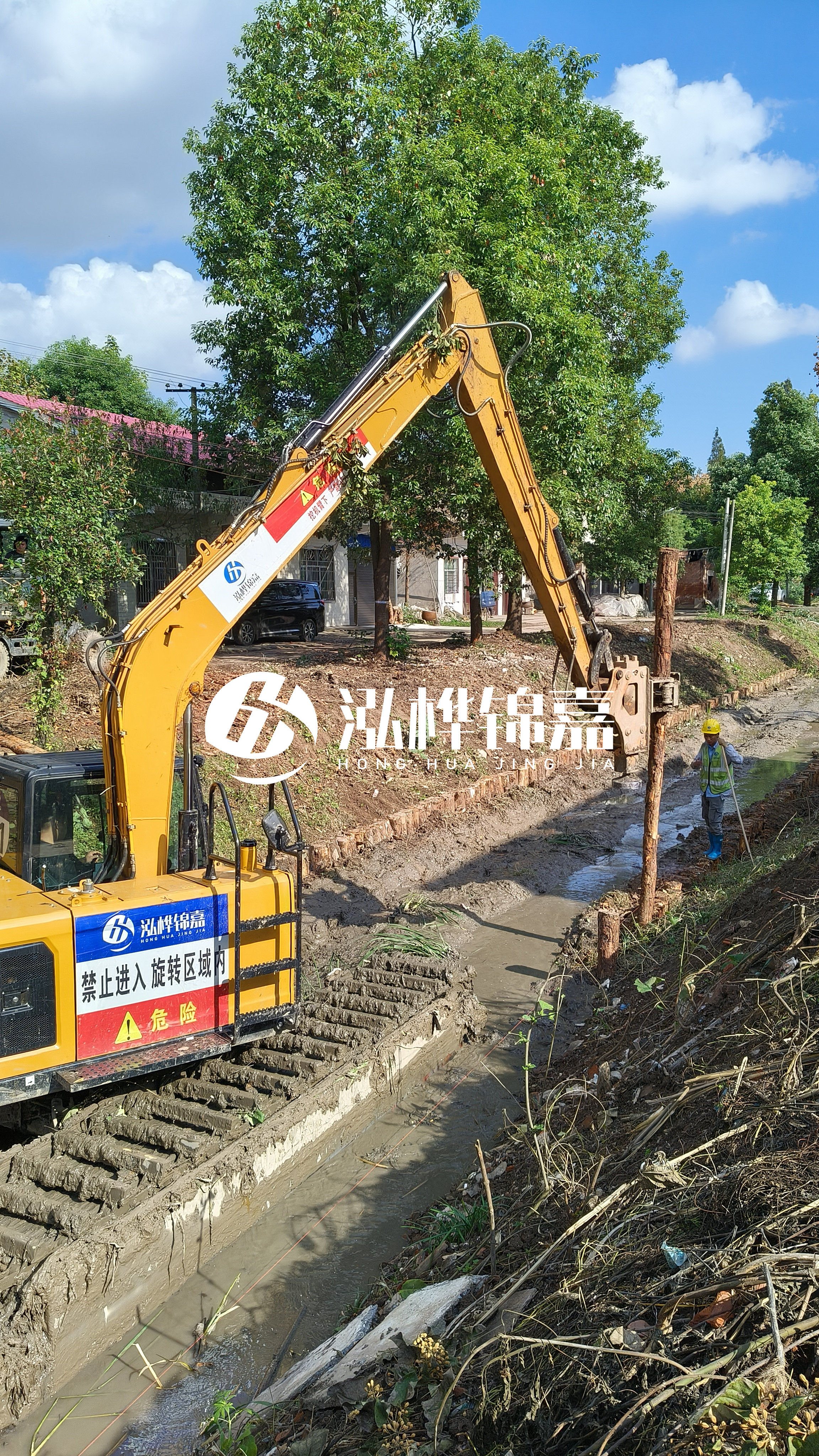 通化挖機(jī)打木樁專業(yè)施工-水挖機(jī)河道清淤如何打木樁?